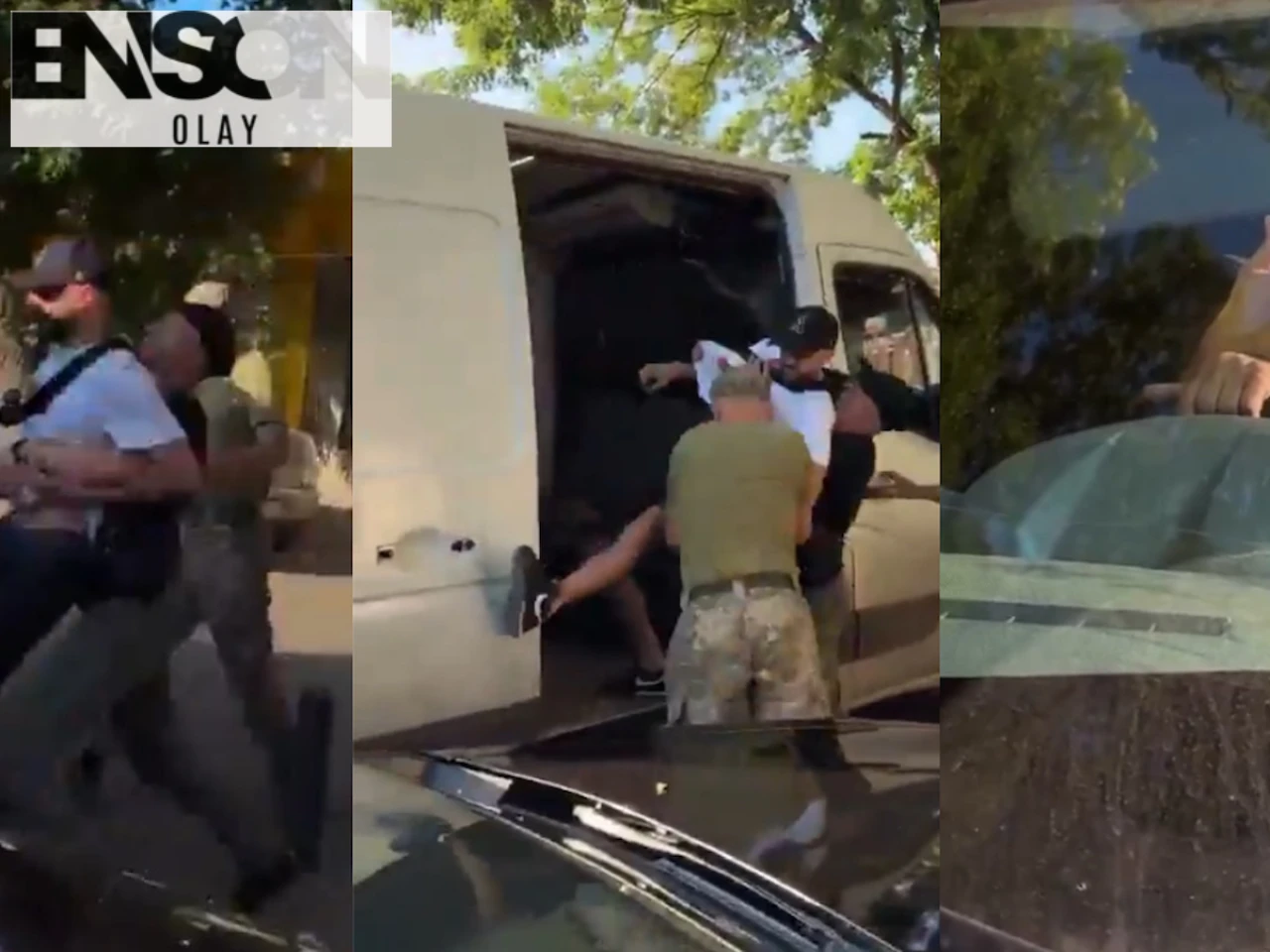 Söz konusu görüntülerde onlarca askerin bir kaçak Ukrayna vatandaşını zorla sevk aracına bindirmeye çalıştığı görüntülere yer verilirken, Ukraynalı gencin askere gitmemek için direndiği ve aracın kapılarını tekmelediği görüntülendi.