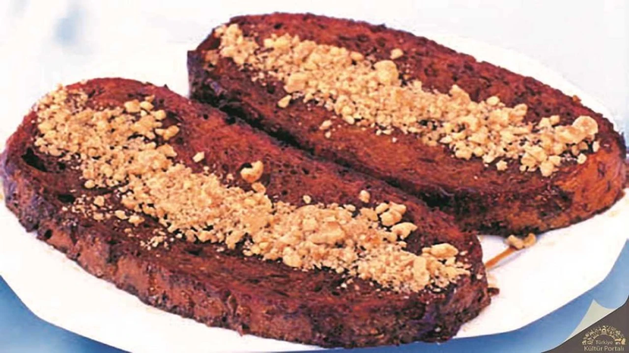 Pekmez, su ve şekeri bir tencereye alın. Şurup kıvamına gelene kadar karıştırarak kaynatın. Dilimlediğiniz bayat ekmekleri kaynayan şerbetin içine atın. Ekmeklerin her iki tarafının da şerbeti iyice çekmesini sağlayın. Şerbetten kevgir yardımıyla aldığınız sıcak ekmekleri tabağa dizin. Üzerine bolca dövülmüş ceviz dökerek servis yapın.